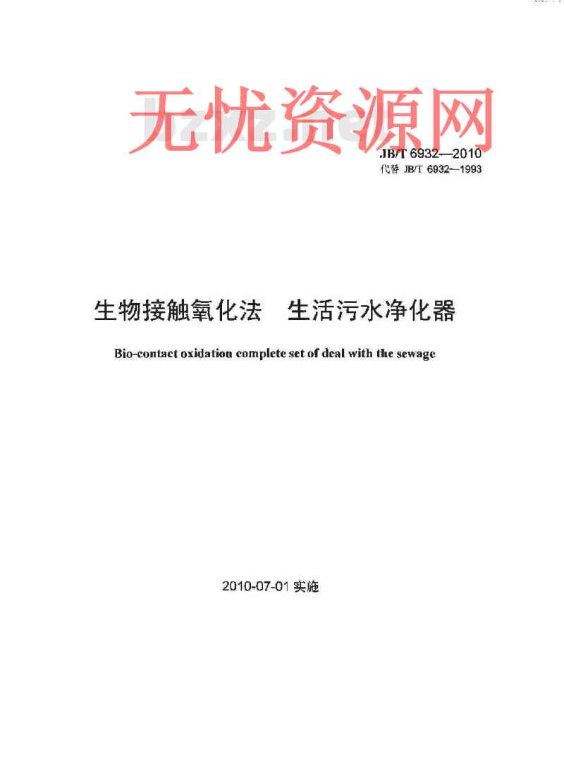 本标准规定了生物接触氧化法生活污水净化器的分类与命名、结构型式、基本参数、技术要求、试验方法、检验规则及标志、包装、运输和贮存等。本标准适用于以生物接触氧化工艺为主,集污水预处理、曝气、沉淀、消毒等处理单元于一体的生活污水生物接触氧化等处理装置,也适用于可生化性接近生活污水的其它污水处理。本装置的适用于处理能力为(0.5~50)t/h的净水装置 JB/T 6932-2010 生物接触氧化法 生活污水净化器 JB/T6932-2010