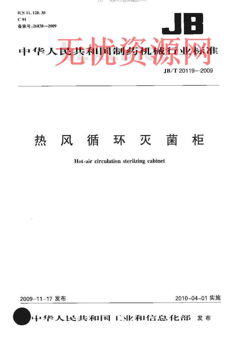 本标准规定了热风循环灭菌柜的分类和标记、要求、试验方法、检验规则及标志、使用说明书、包装、运输和储存。本标准适用于被灭菌物灭菌去热原的热风循环灭菌柜。 JB/T 20119-2009 热风循环灭菌柜 JB/T20119-2009